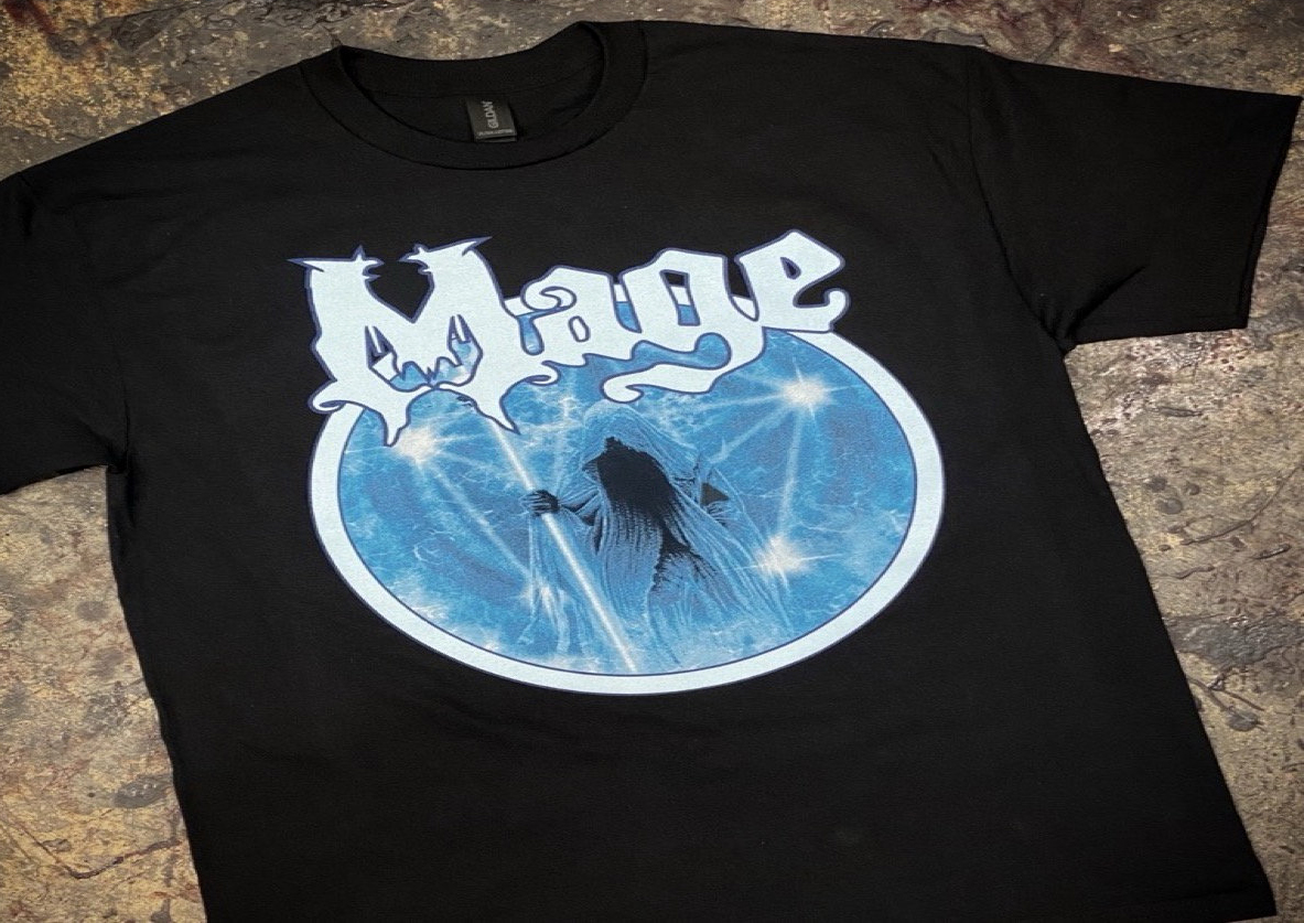 Mage Hymns For The Afterlife album cover T-shirt featuring artwork by Woody.